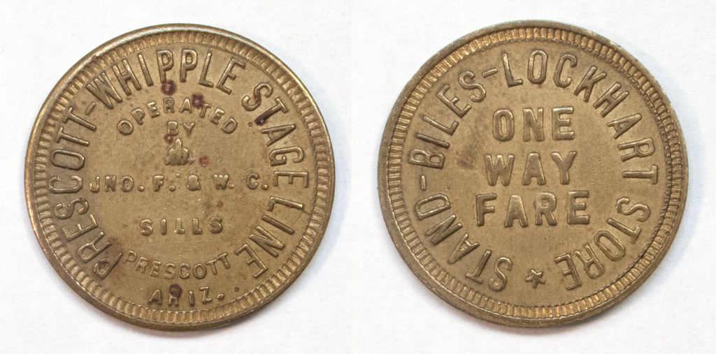 PRESCOTT-WHIPPLE STAGE LINES // ONE WAY FARE Brass - autostage used 1922-1925