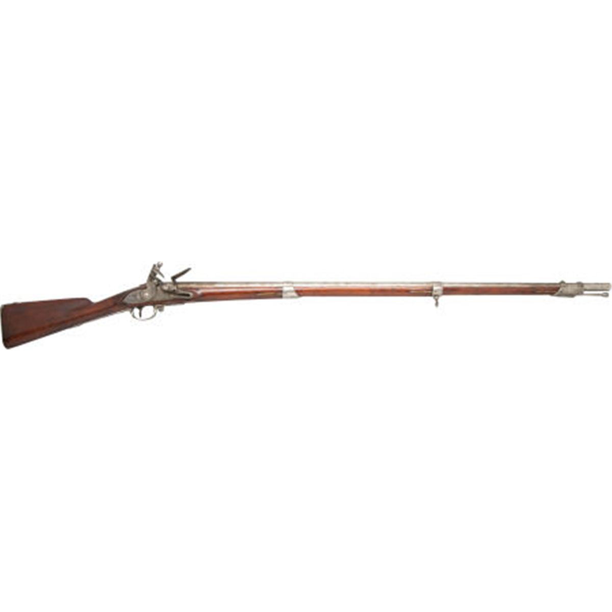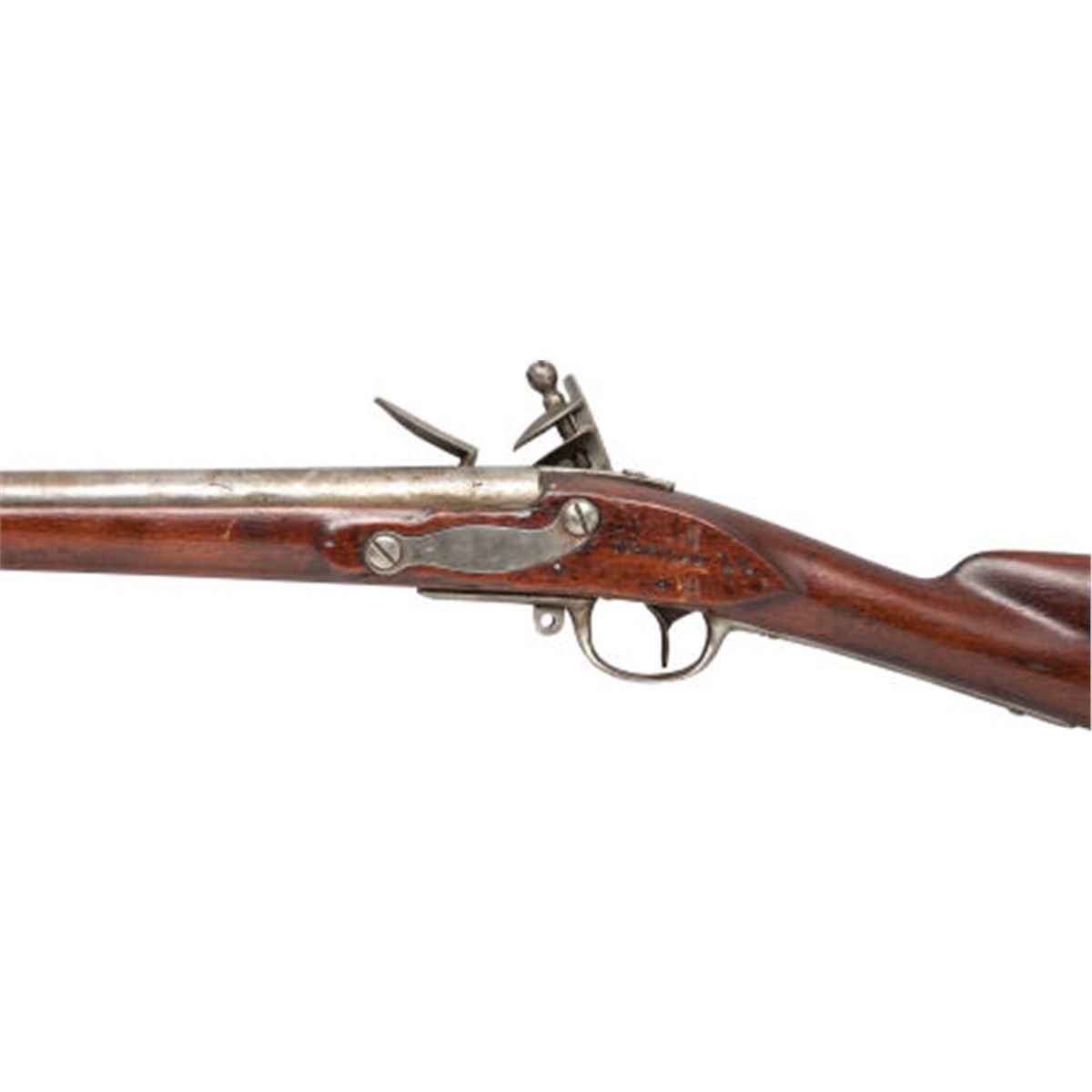 Rare U.S. Model 1808 Contract Flintlock Musket by Millbury Dated 1815. .54 caliber, 44 1/2-inch barrel with three steel bands. Marked at breech P/M/M. Lock marked: Millbury/1815. Varnished walnut stock with steel furniture. Left side of stock marked: Maryland 48. Steel ramrod. Sling mounts. Condition: Good. Metal with bright grey patina and scattered pitting overall. Wood refinished and showing wear, dents and bruises. Action good.