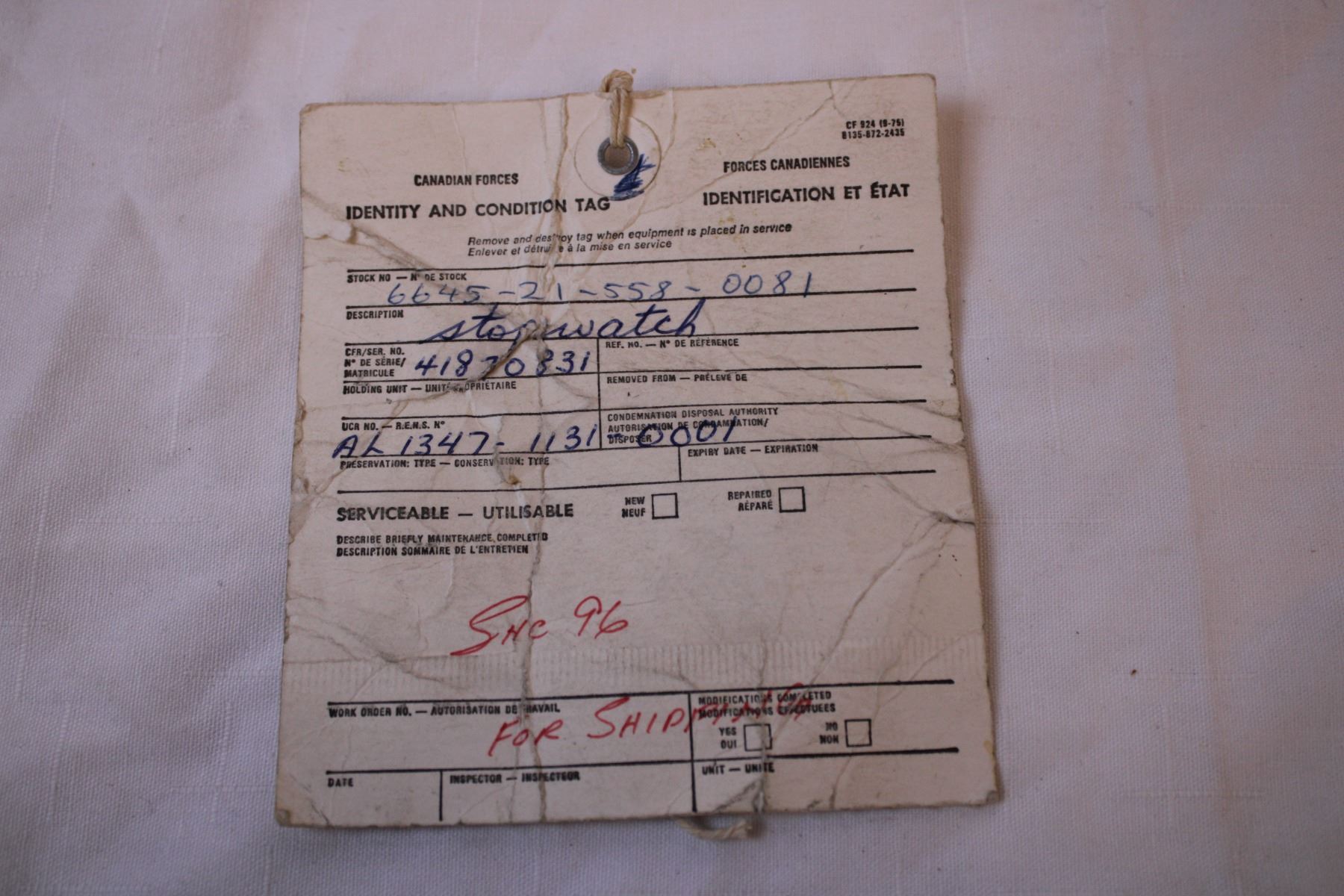 Rare US Military Elgin Torpedo/bomber Watch timer (one is working) comes with Canadian Forces Identity tag