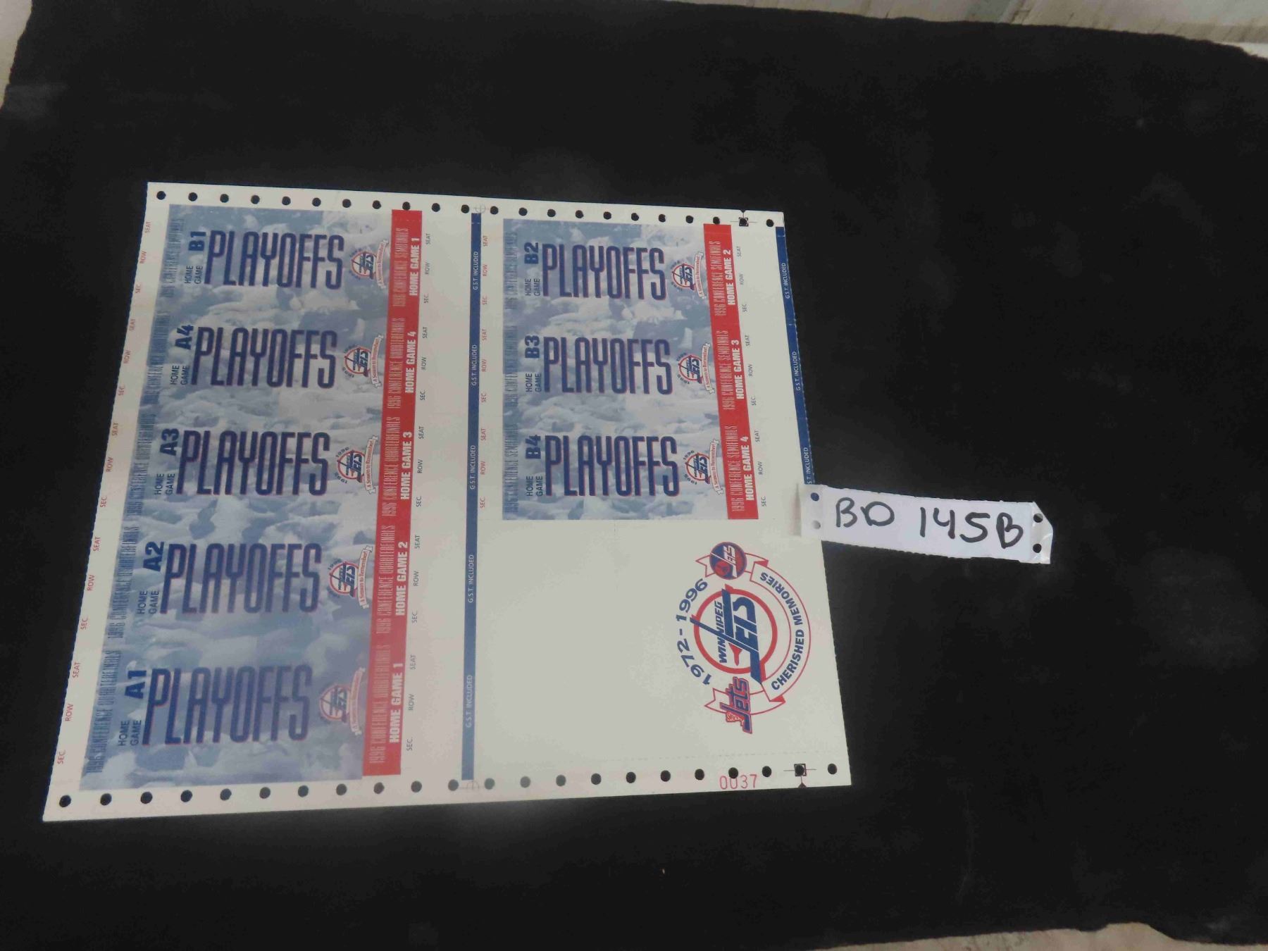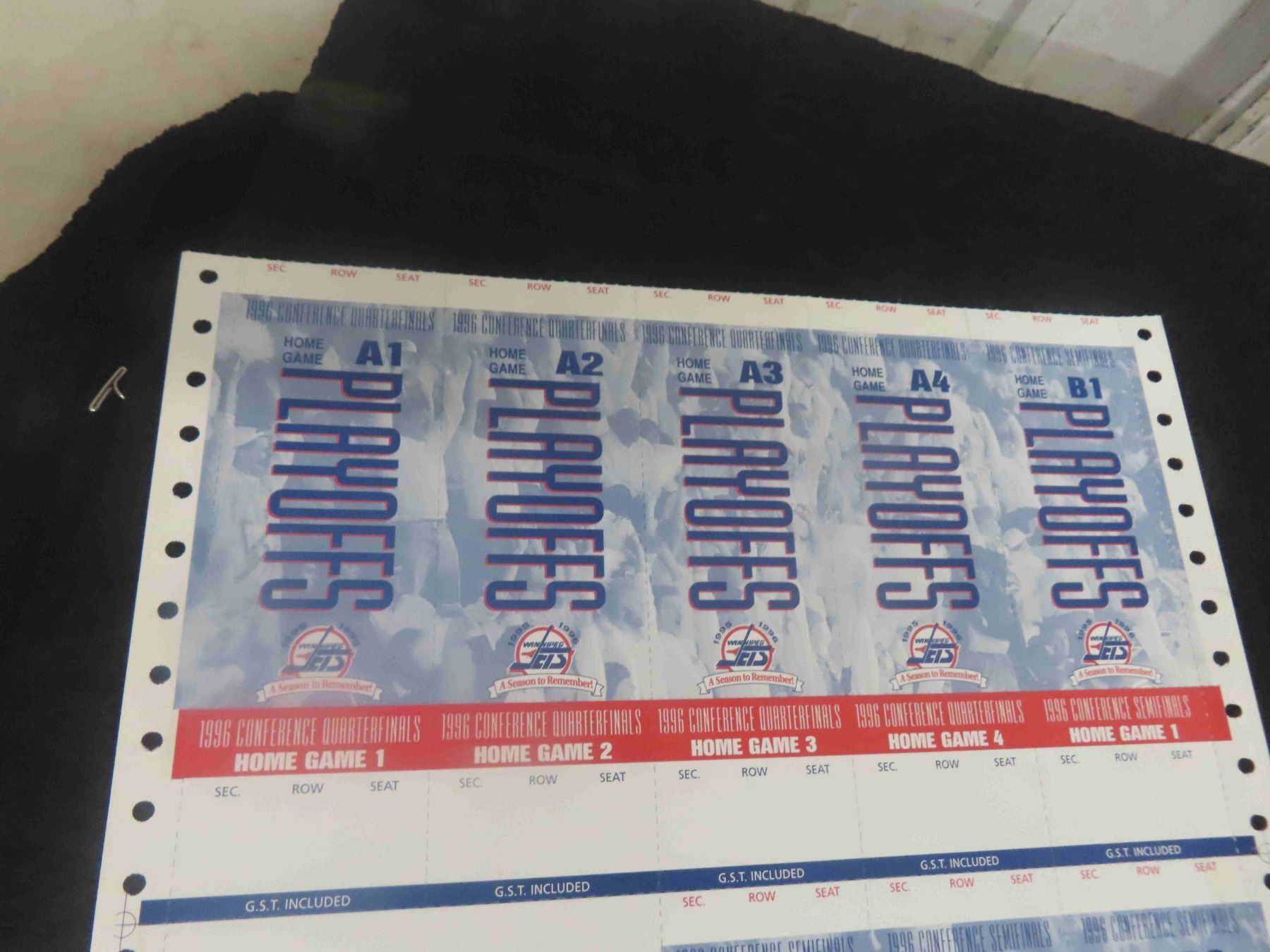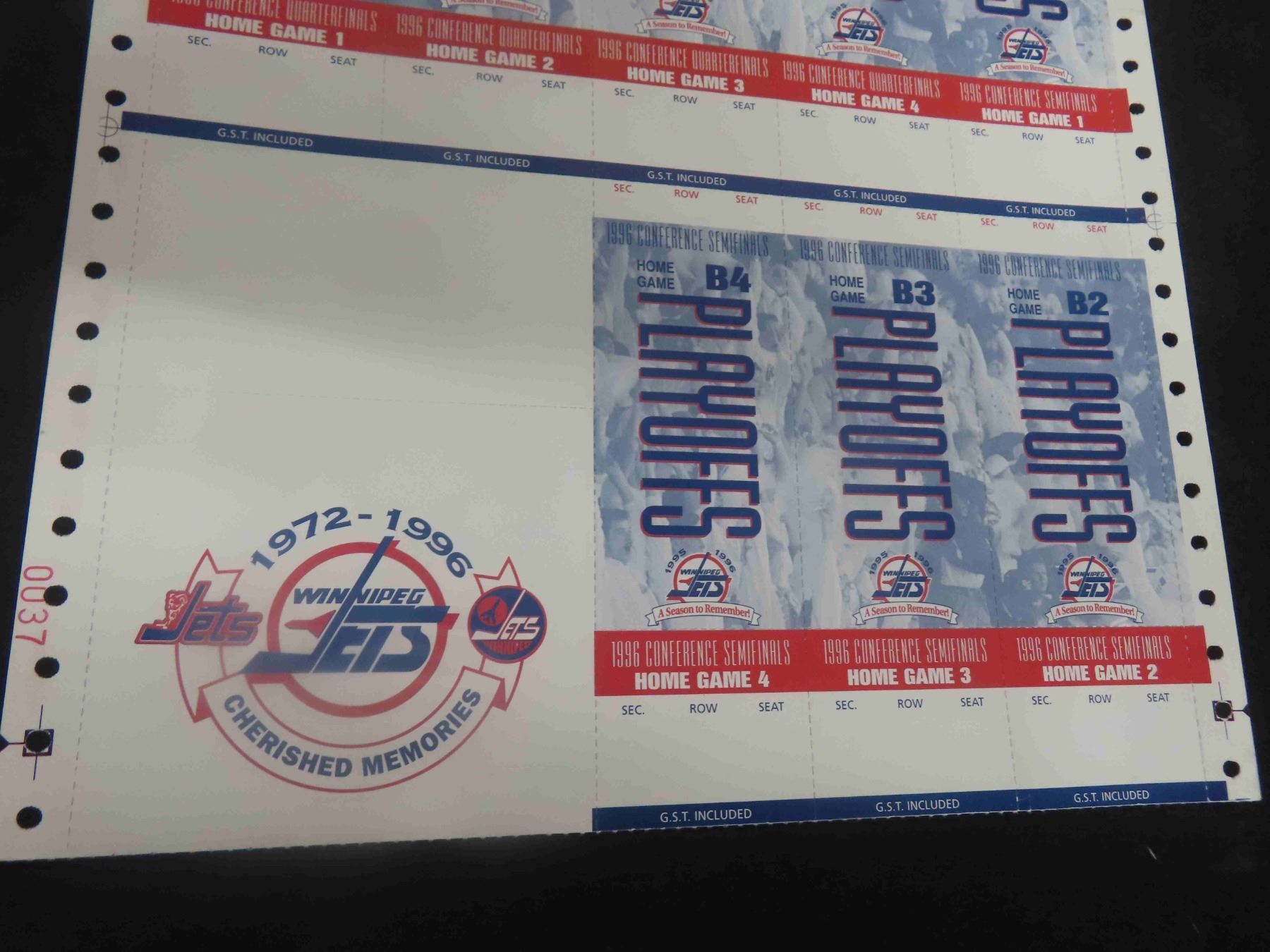 Rare! Uncut Sheet of Winnipeg Jets White Out 1996 Playoff Tickets