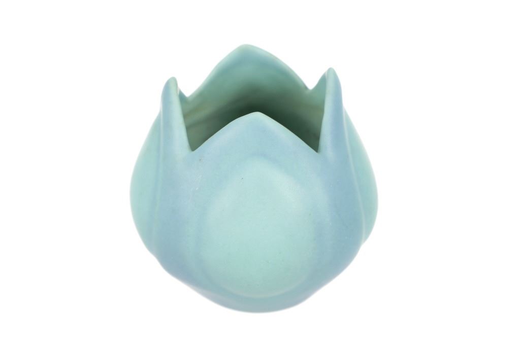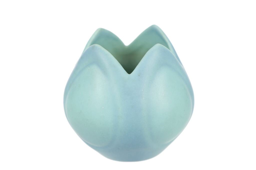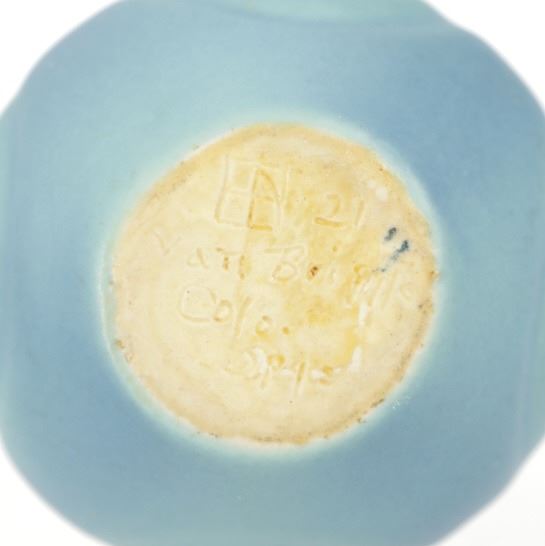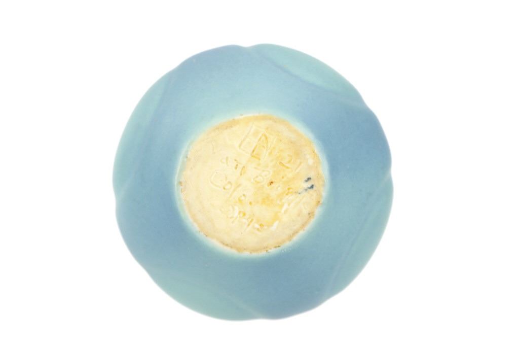Featured in this lot is this rare Van Briggle Studios pottery vessel circa 1921. In 1899 Artus Van Briggle stepped off the train in Colorado Springs, though Artus was a brilliant painter, his artistic passions were most famously expressed in one of history’s oldest arts - pottery. The vessel shows a floral decorative rim that shows contrasting coloration of light blue to dark blue that shows the petals well. In 1899 Artus Van Briggle stepped off the train in Colorado Springs, though Artus was a brilliant painter, his artistic passions were most famously expressed in one of history’s oldest arts - pottery.