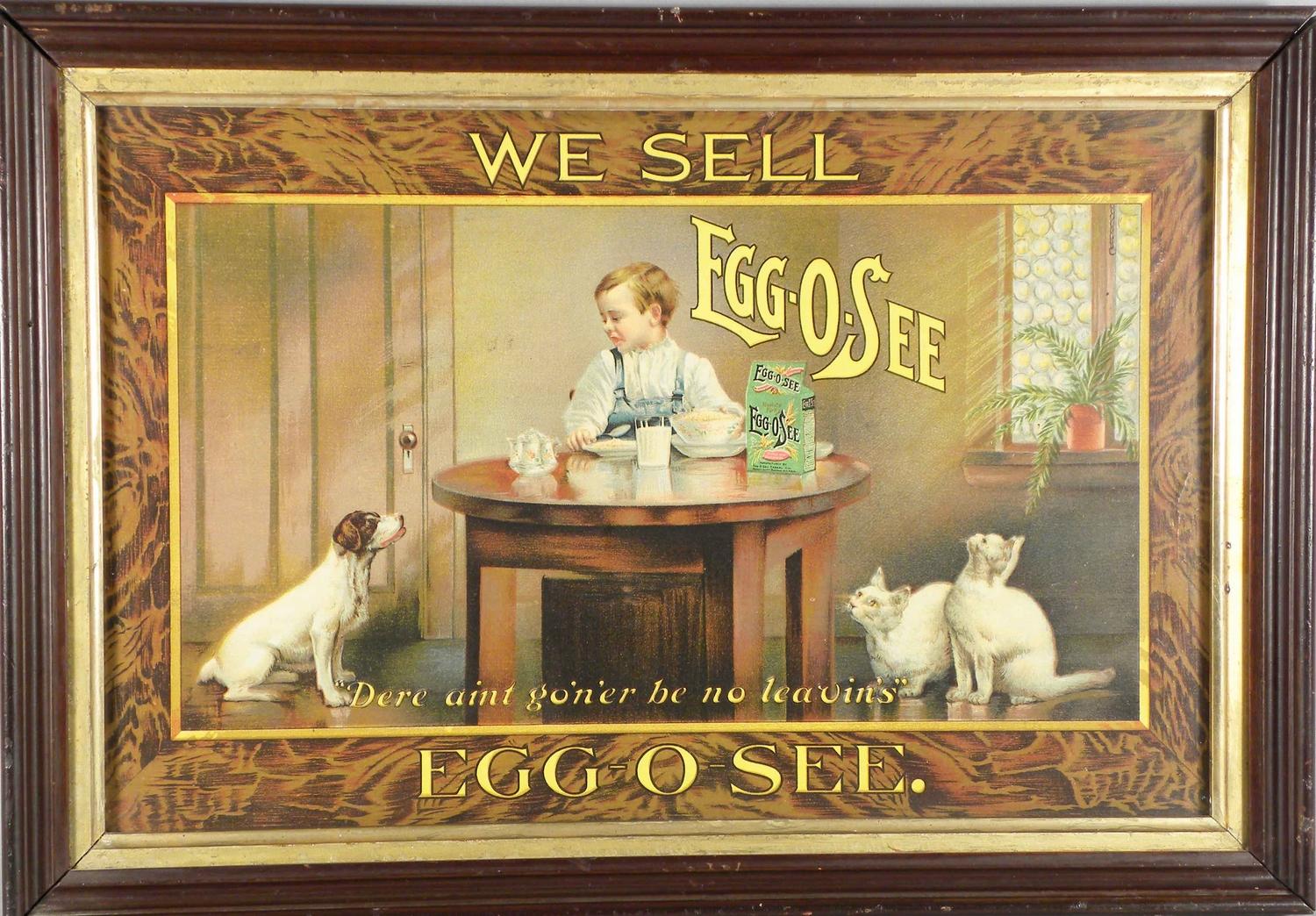 Rare Version Egg-O-See Brand Cereal.Cardboard,  Framed under glass. Near mint condition. 18 X 12 1/2 inches overall.