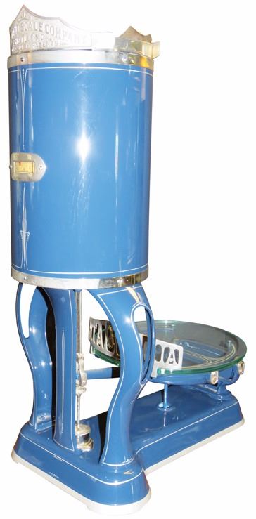 Rare Vertical Barrel Scale. Independence Scale Co. Asheville, NC. Excellent restored condition. 18 X 36 1/2 X 22 inches.