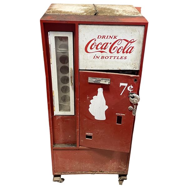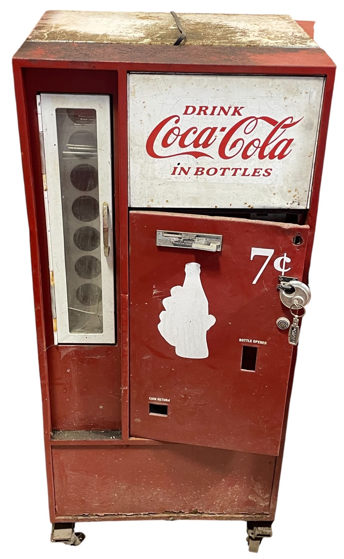 Rare Vintage Coca-Cola 'drink in bottles' vending machine (ser no. 606057417) - approx 25in W x 21in L x 55 1/2in H