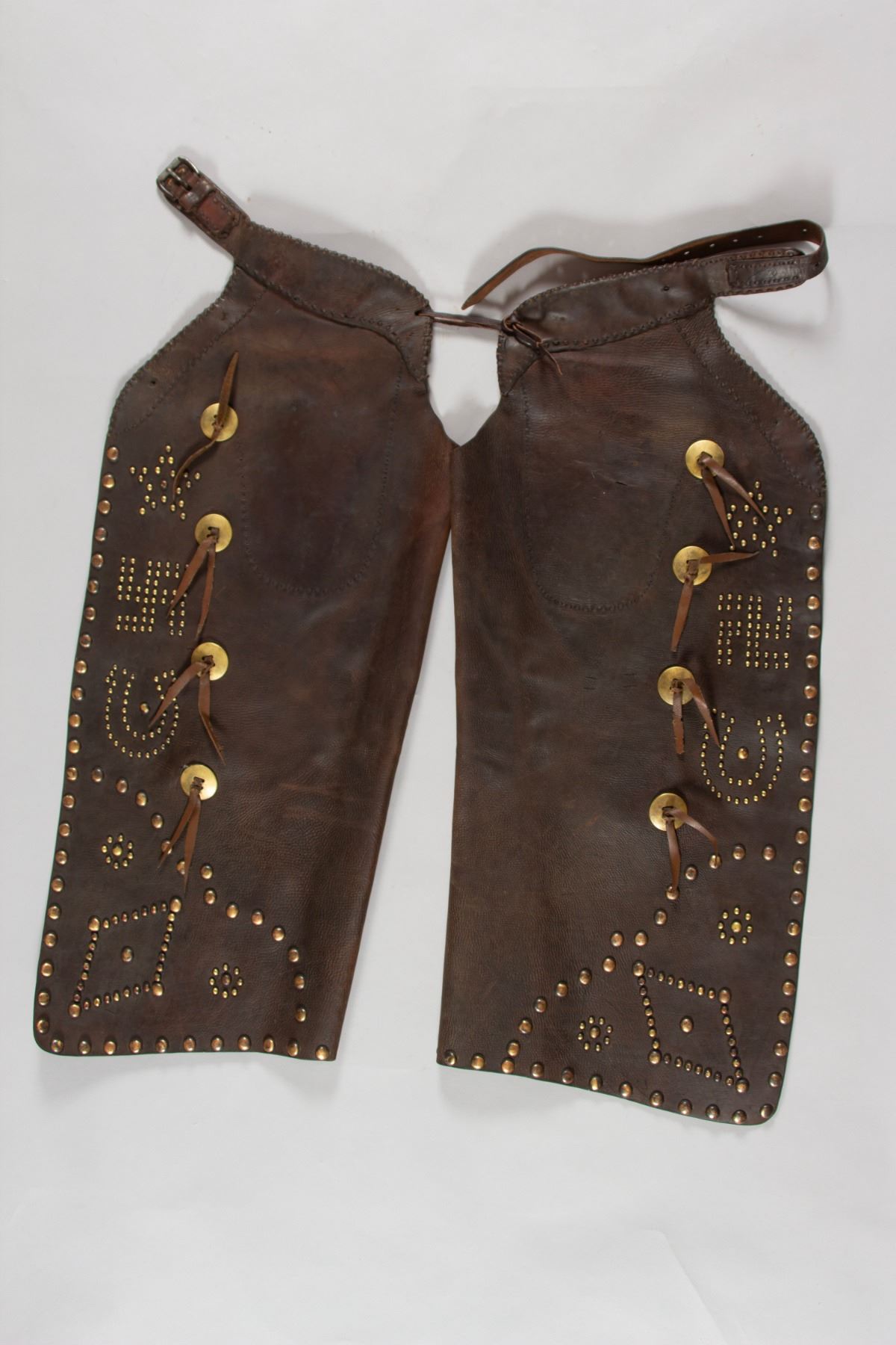 Rare Vintage Hamley & Co Studded Chaps with Whirling Log Symbols, Ca 1910-1920s