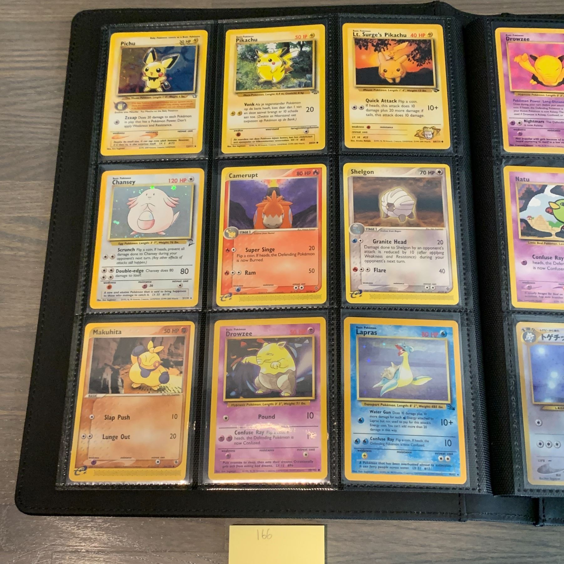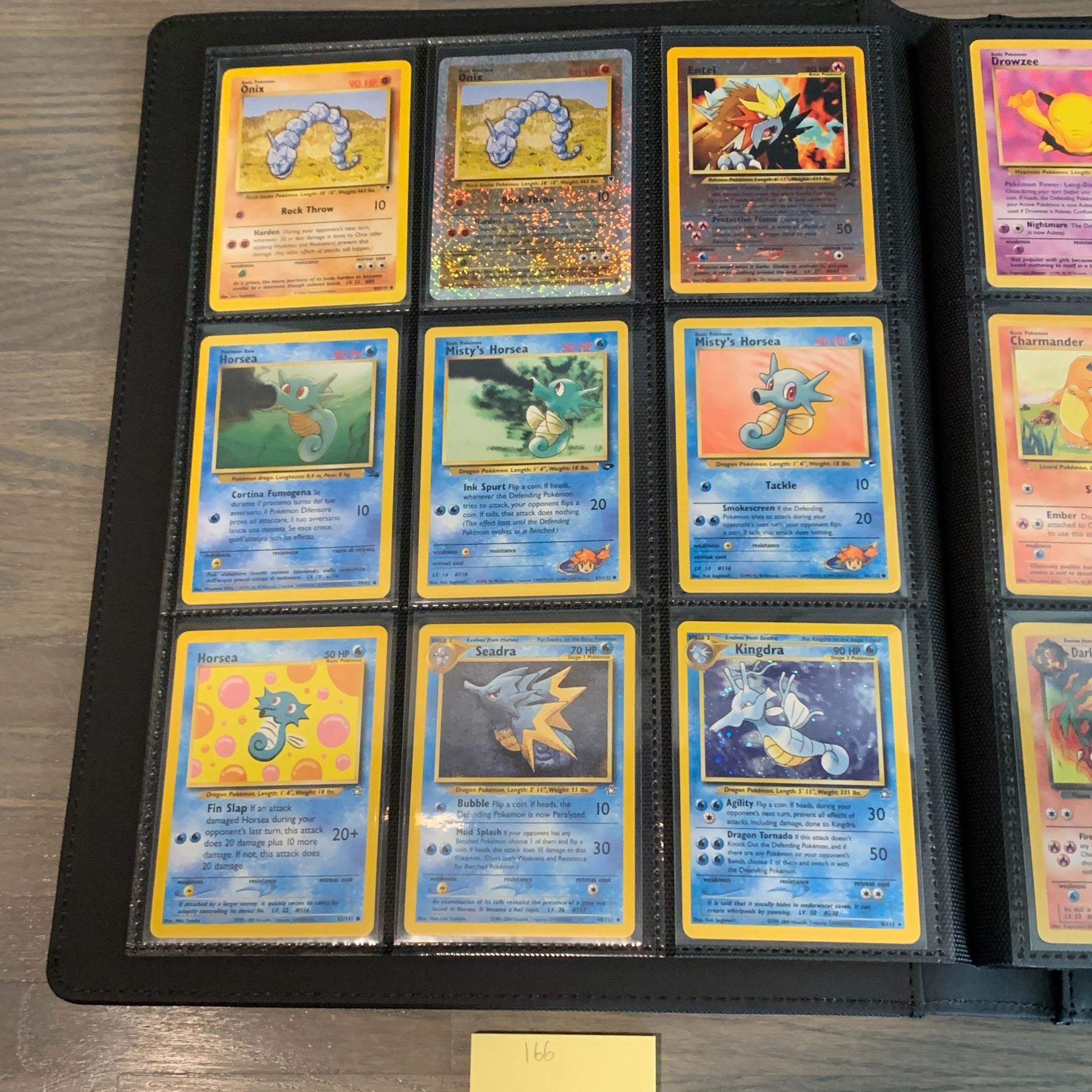 Binder with Rare Vintage Pokemon Cards. Includes Holos, and Reverse Holos. Vintage Cards from Base Set - Legendary Collection and some E readers. See photos for conditions. See photos for condition. If you are interested in consigning with us, email aeronhouse1994@gmail.com or fill out the consignment form on ahauctionhouse.com