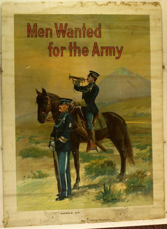 "Men Wanted for the Army" bottom reading "Apply at Coffeyville for Wichita Kansas Recruiting Station". Original artwork accomplished by Michael P. Whelan, 30" X 40".