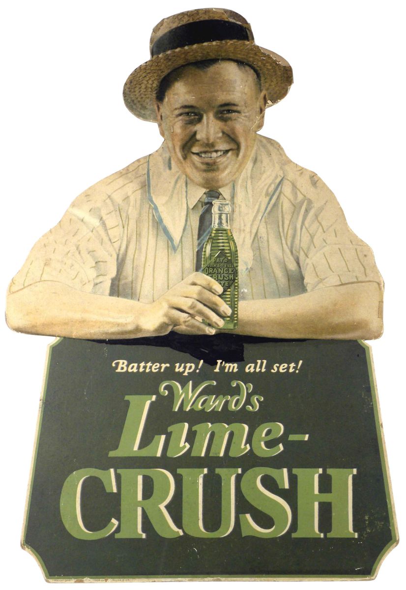 Very Rare Ward's Lime Crush Easel Back Die Cut Cardboard Sign. Some paper loss around hat and ear otherwise good condition. 11 1/4 X 17 1/4 inches.