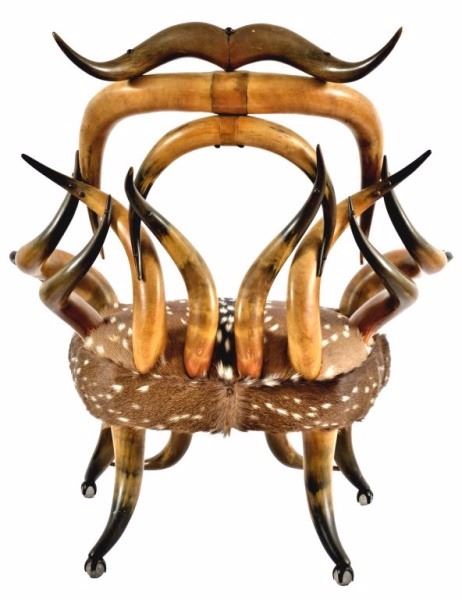 In 1880 Friedrich expanded his cabinetmaking business to include the manufacture of horn furniture. It has not been established whether he originated horn furniture, but over the next ten years he crafted some of the most innovative. His works received awards of merit at the Cincinnati Industrial Exposition of 1883, the New Orleans Industrial and Cotton Centennial Exposition of 1884–85, and the Southern Exposition at Louisville, Kentucky, in 1886. Between 1880 and 1890 his furniture, noted for its quality, was sold throughout the United States and Europe. His patrons included Queen Victoria, Otto von Bismarck, and Kaiser Wilhelm I. Friedrich died in San Antonio on November 7, 1902. Today his furniture is displayed in museums throughout the United States." - bio courtesy of the Texas State Historical Association.