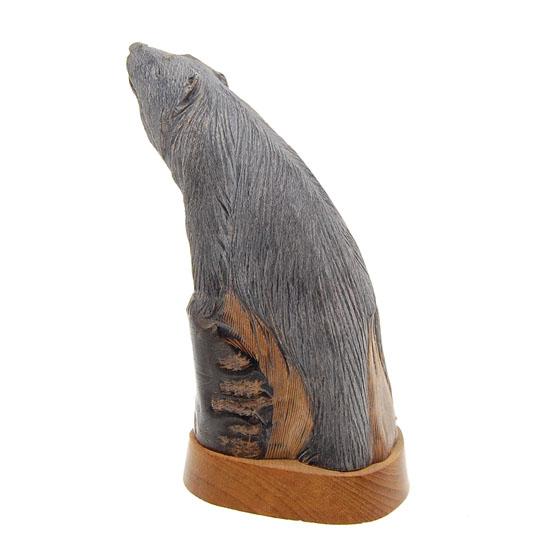 Excellent piece, finely carved Thai scrimshaw in bear image on RARE buffalo horn, 7", $175 retail