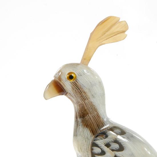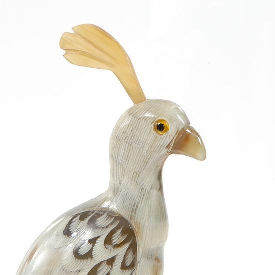 Excellent piece, finely carved Thai scrimshaw in peacock image on rare white water buffalo horn, 10"