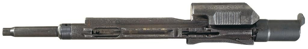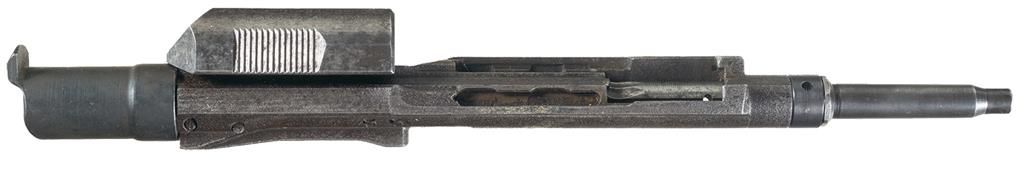 This is a representative example of a very rare WWI era 1918-Mark I Pederson Device for the Mark I 1903 Springfield Bolt Action Rifle. As we all know these rare Pedersen Devices were developed in late 1918 and were designated as the "Automatic Pistol, Caliber .30, Model of 1918- Mark I". The Pedersen Device itself consisted of a semi-automatic bolt assembly and detachable stick magazine that was designed to replace the complete standard bolt in a U.S. Springfield Model 1903 Mark I Rifle, which would convert the rifle into a semi-automatic weapon. The Pedersen Device was intended to provide the infantry man with a close range, semi-automatic rifle for assaults on enemy trenches, but still retain the capability of converting the rifle back into a high powered, bolt action rifle for long range combat. The Army planned to introduce the Pedersen Device in the offensive against the German Army in the spring of 1919, however when WWI ended in November 1918, the Pedersen Devices were placed in storage. The device itself fired a low velocity .30 caliber type pistol sized cartridge designated: "Caliber .30 Automatic Ball Pistol" to disguise its intent. The device used a 40-round stick magazine that would have been inserted into the right side of the Pederson Device, when installed in the rifle, and the spent cartridge would be ejected through the port on the left side of the 1903 Mark I rifle receiver. During and after WWI it was classified as a secret weapon until 1931 when the security classification was removed from the Pedersen Device and all of the devices were ordered to be destroyed. The destruction was nearly complete as fewer than 100 Pedersen Devices are estimated to be in collections and museums today. The Pedersen Device itself is marked on top of the cocking piece in two blocks: "U.S.A. 1918-MARK I/ 972" with the right side marked: "REMINGTON-BRIDGEPORT/PEDERSEN'S PAT'S. PENDING" in two lines. When all of the devices were ordered destroyed, there supposedly burned first and then crushed. This device is partially complete, but it included the body of the device, cocking piece and sliding body assembly, the end cap, extractor and several of the internal springs.
