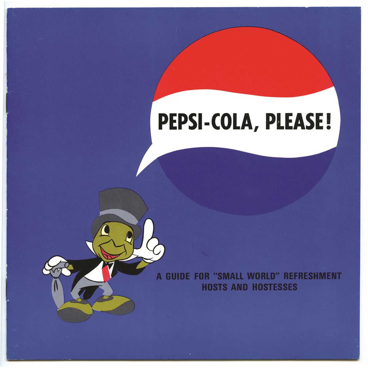 (World's Fair, 1964) Extremely rare Pepsi-Cola Host and Hostess guide to the It's A Small World attraction at the 1964 World's Fair. Titled, Pepsi-Cola, Please: A Guide for Small World Refreshment Host and Hostesses, the (8) page booklet gives an overview of the Disney way of handling guests as well Pepsi-Cola's company philosophy. Measuring 8 x8 in., the book is in very good condition, with very light wear.
