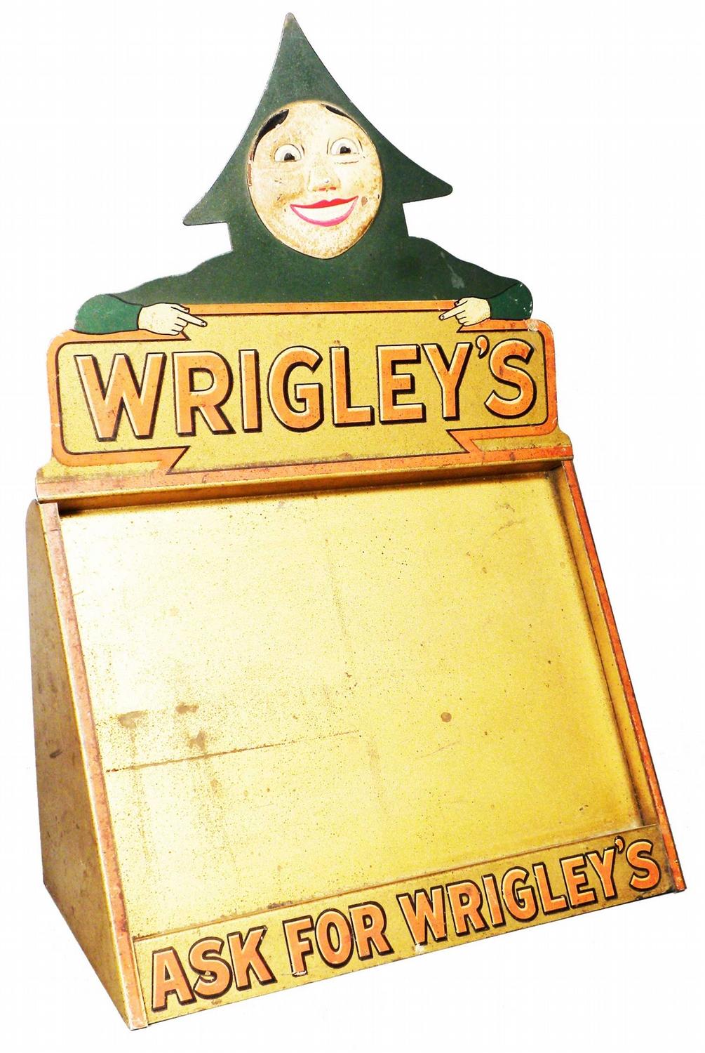 Rare Wrigley's Gum Tin Litho Store Display Fixture. Has rare tin face on marquee. Some rust spots throughout otherwise good condition. 13 1/4 X 20 X 6 1/4inches.