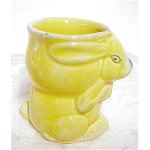 This vintage egg cup is CUTE!, Depicting adorable yellow bunny with very long ears - Stands about 2 1/4" high and it is very good condition, but for a tiny, tiny nick on the top of the edge above the ear - US Buyer to pay 7.00 for insured shipping - Thank You very much for looking!