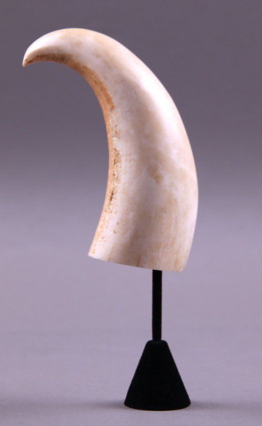 Rare and unique curved Whale Tooth.(Size: See last photo for measurement.) Photos are part of the description representing the condition report. Pangaea Auctions urges Bidder's to view all attached photos. "WILL NOT SHIP OUTSIDE OF THE UNITED STATES"