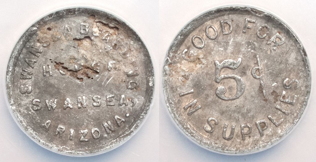 Swansea Boarding House / Swansea / Arizona // GF 5c in Supplies. R9. Genuine.City: SwanseaCounty: La PazState: AZDate: