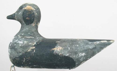 Rare early Labrador duck from LI. Ca late 1800's. In very old paint with some original. Some chips on the surface. Struck by shot. (decoy)