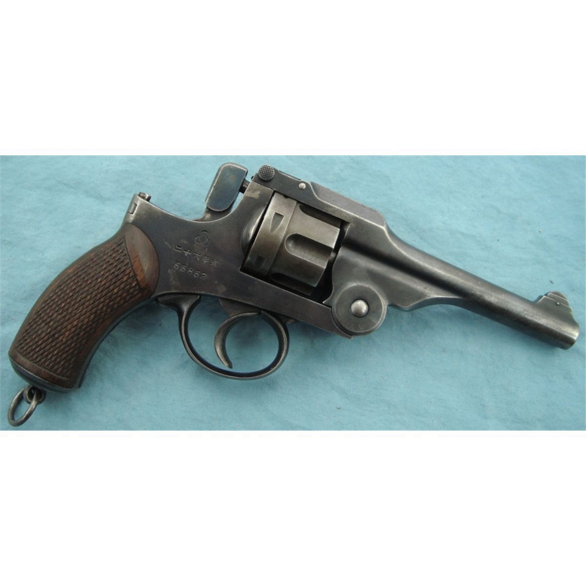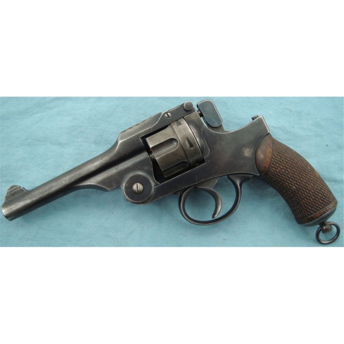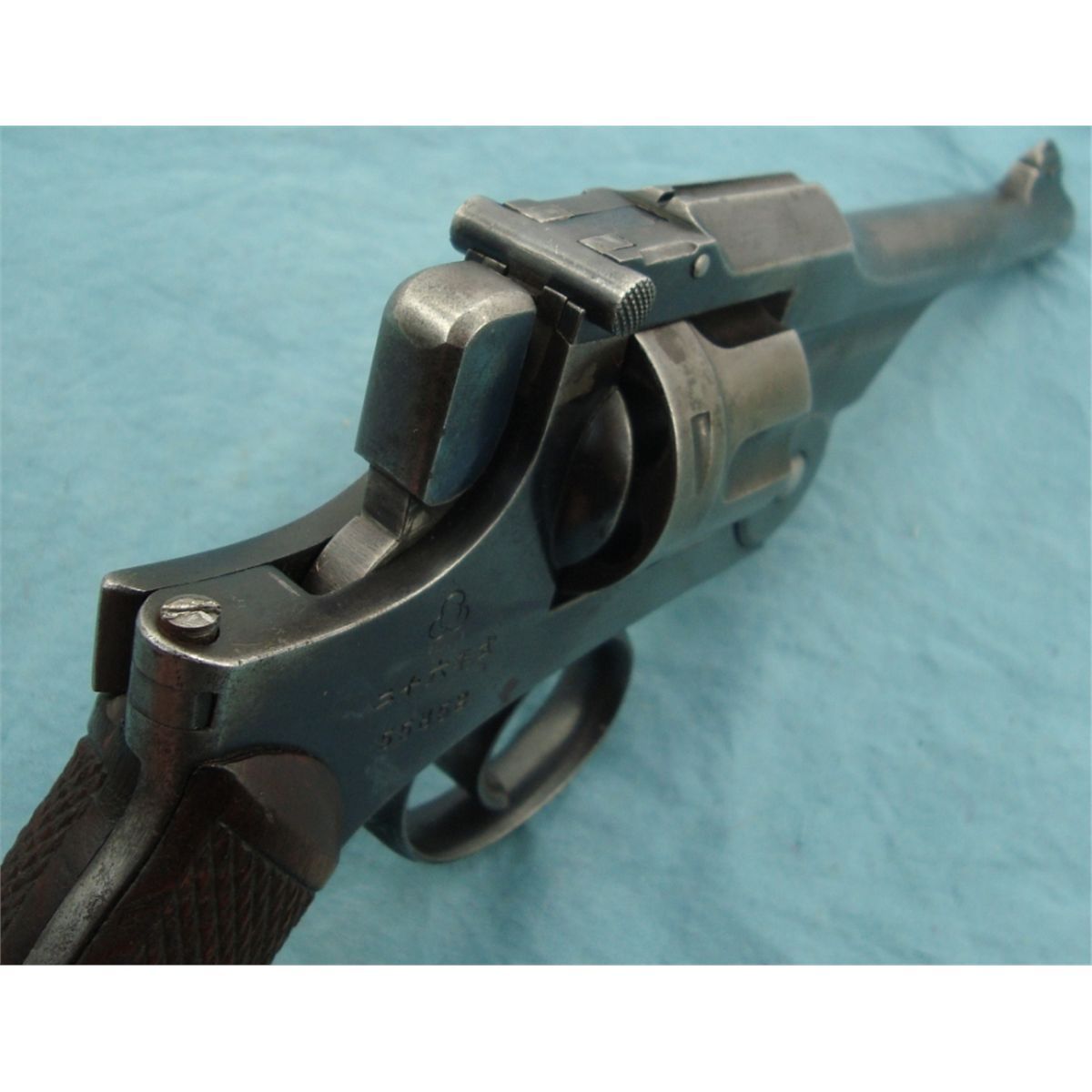 #55852; 8mm. In good overall condition. With good blue in protected areas fading along bbl & on top strap. Dbl action, mecahnically seems to function well.