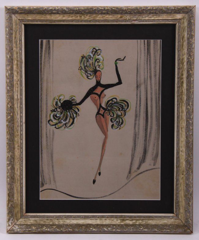 Rare original gouache painting on paper of Paris Follies wardrobe. Paris Follies of 1956, a 1955 American film directed by Leslie Goodwins. The film is also known as Fresh from Paris in the USA (TV title). (Size: See second photo for measurement.) Photos are part of the description representing the condition report. Pangaea Auctions urges Bidder's to view all attached photos.