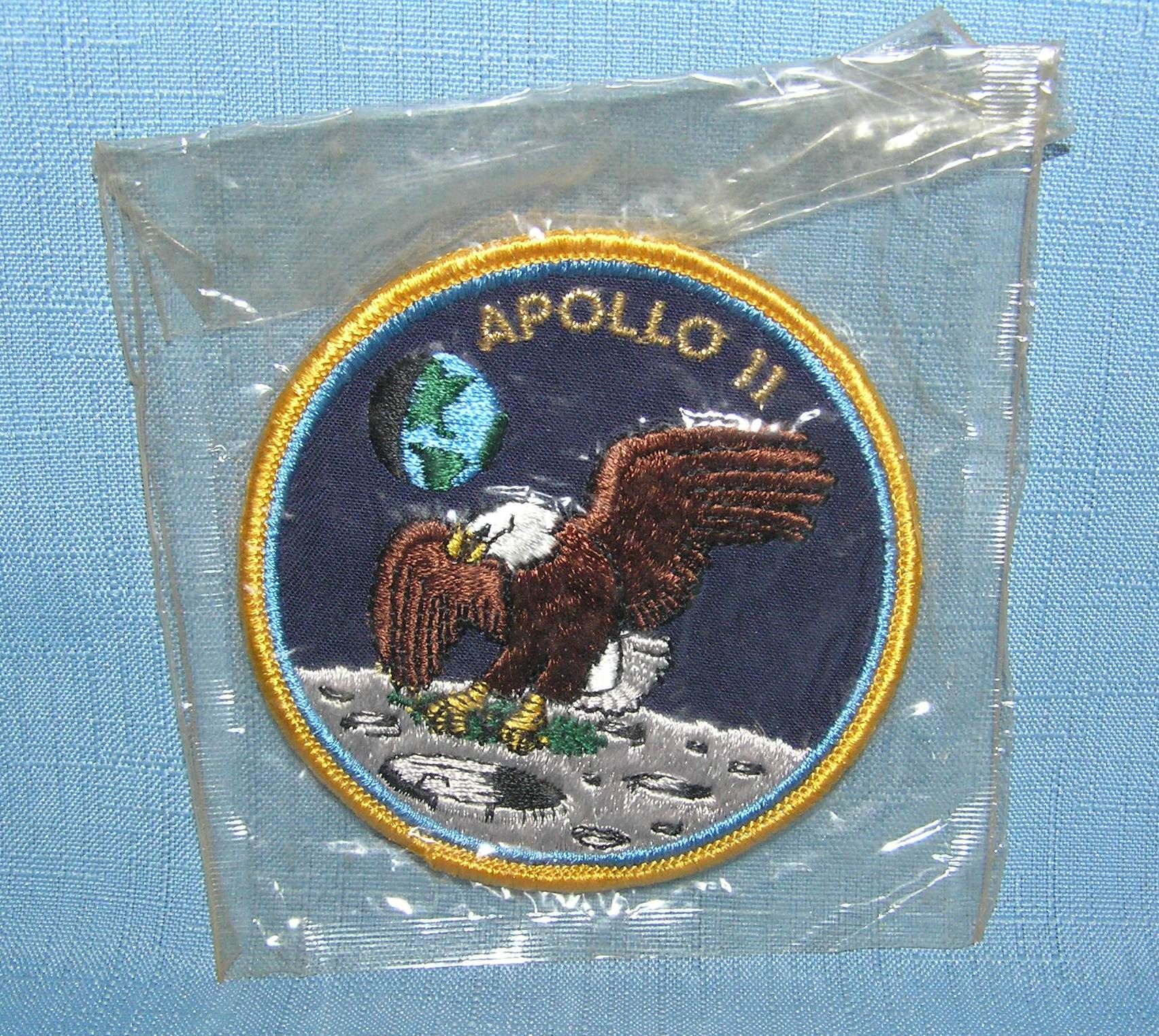Rare original large Apollo 11 first man on the moon landing patch 3 1/2 inch consigned from a former NASA space program employee mint condition est. value $140.00-$150.00