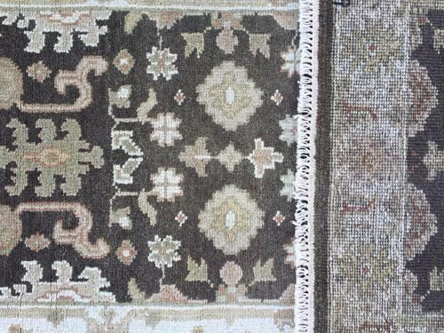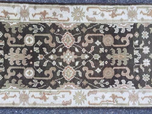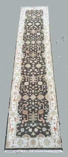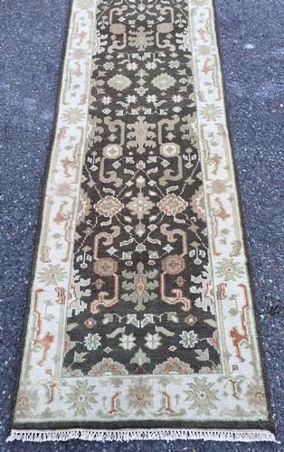 Rare unique color fine sultan-Abad design Runner. 100% natural, vegetable dye, hand woven, baby lamb's wool pile on cotton foundation. Sultan-abads typically come with a bold and primitive pattern; this unique piece is woven by an artisan, where he has combined the best of artistry and craftsmanship. The design and motifs incorporated here represent the weaver's daily life experiences and cultural influences. these include elements such as prosperity, fertility, good fortune and religious beliefs. this lovely runner has a wonderful glowing sheen because of the superior quality wool used. Size: 12 feet X 2 feet 7 inches. Country of Origin: Nepal.