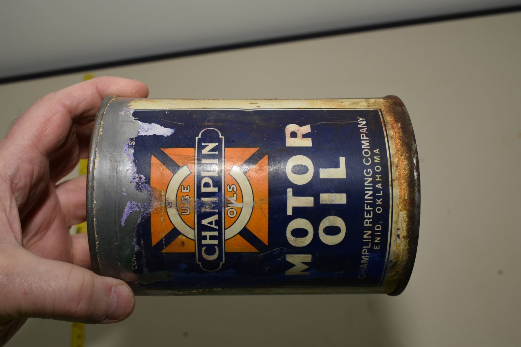 Rare version Champlin oil tin