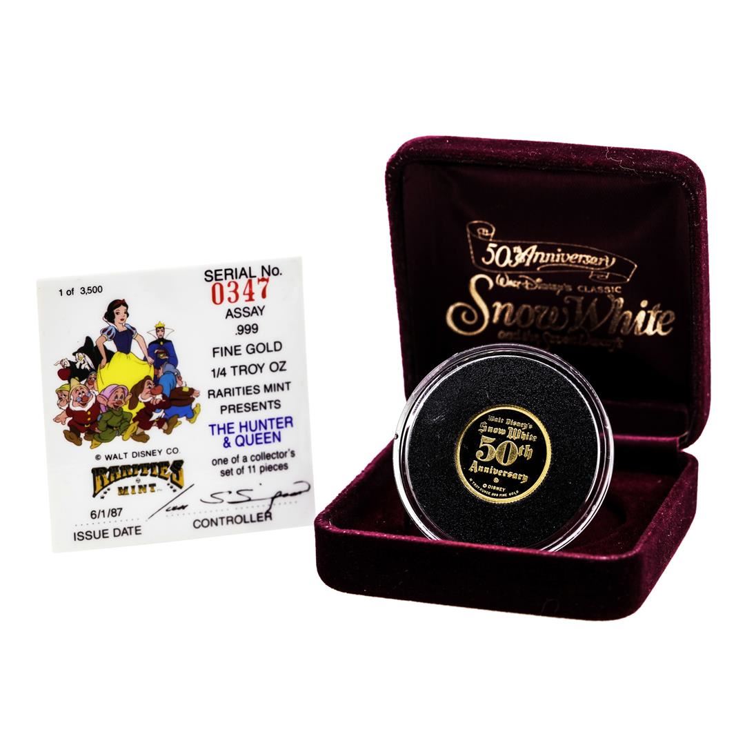 One Rarities Mint 1987 Disney The Hunter & Queen 1/4oz Gold Coin with Box and COA.