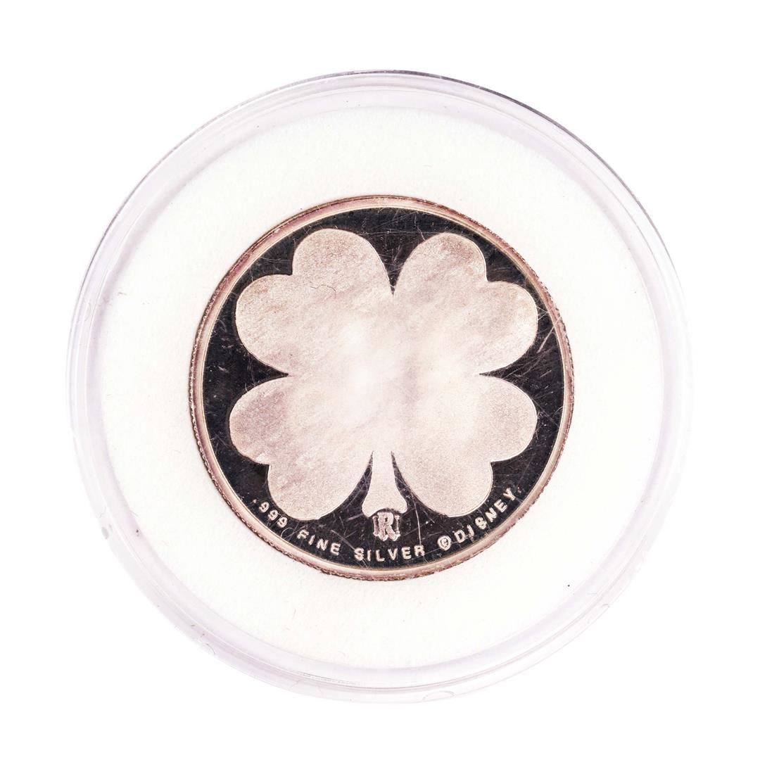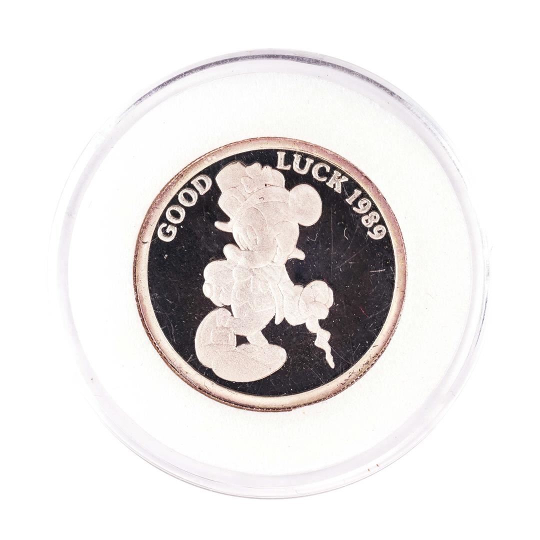 One Rarities Mint 1989 Disney Mickey "Good Luck" 1/4 oz. .999 Fine Silver Round.