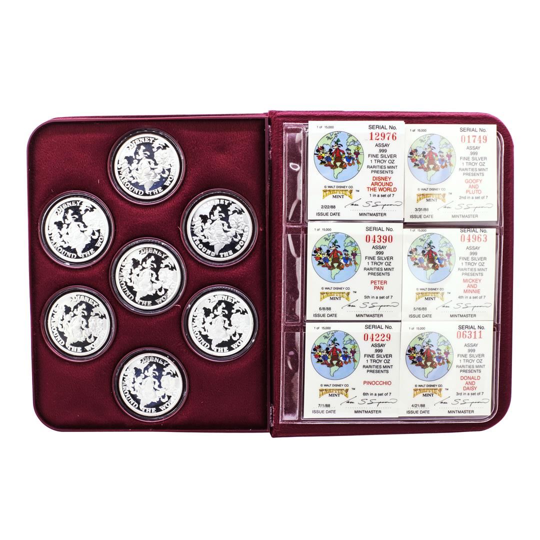 One Rarities Mint Disney Around the World Rare (7)pc Set 1oz .999 Pure Silver w/Box & COA.