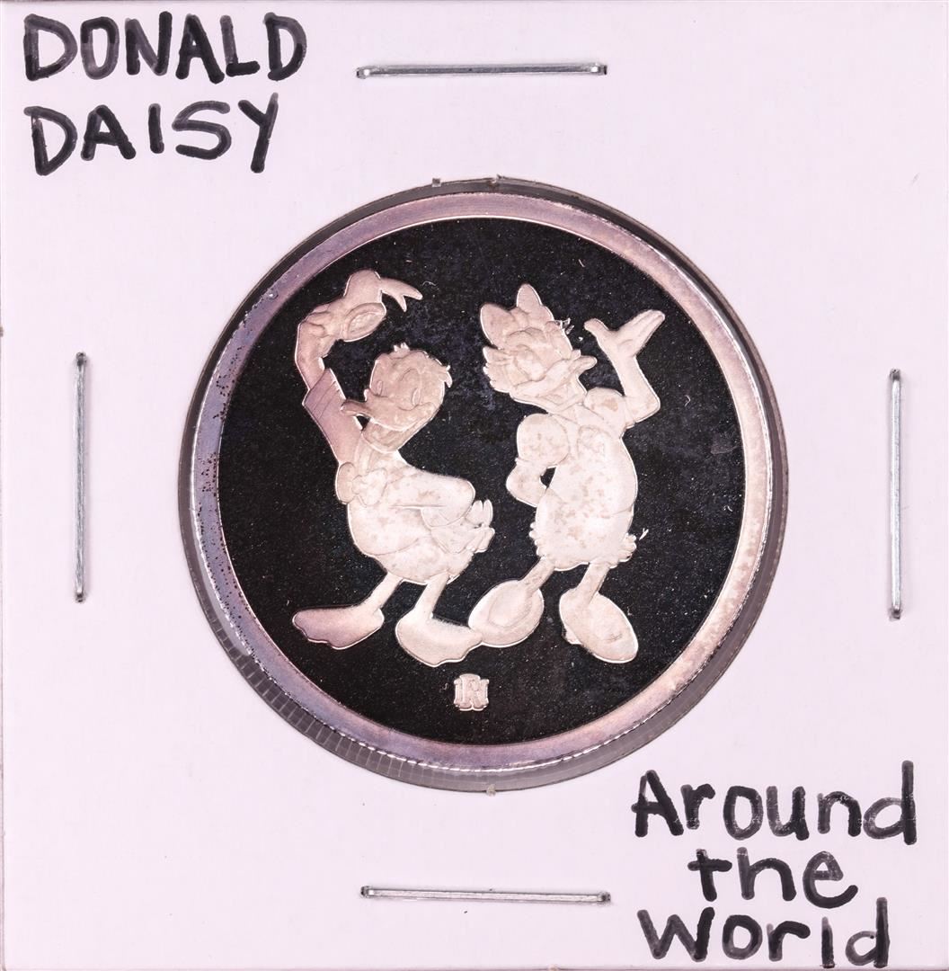One Rarities Mint Disney Donald & Daisy "Around The World" 1/4 oz. .999 Fine Silver Round.