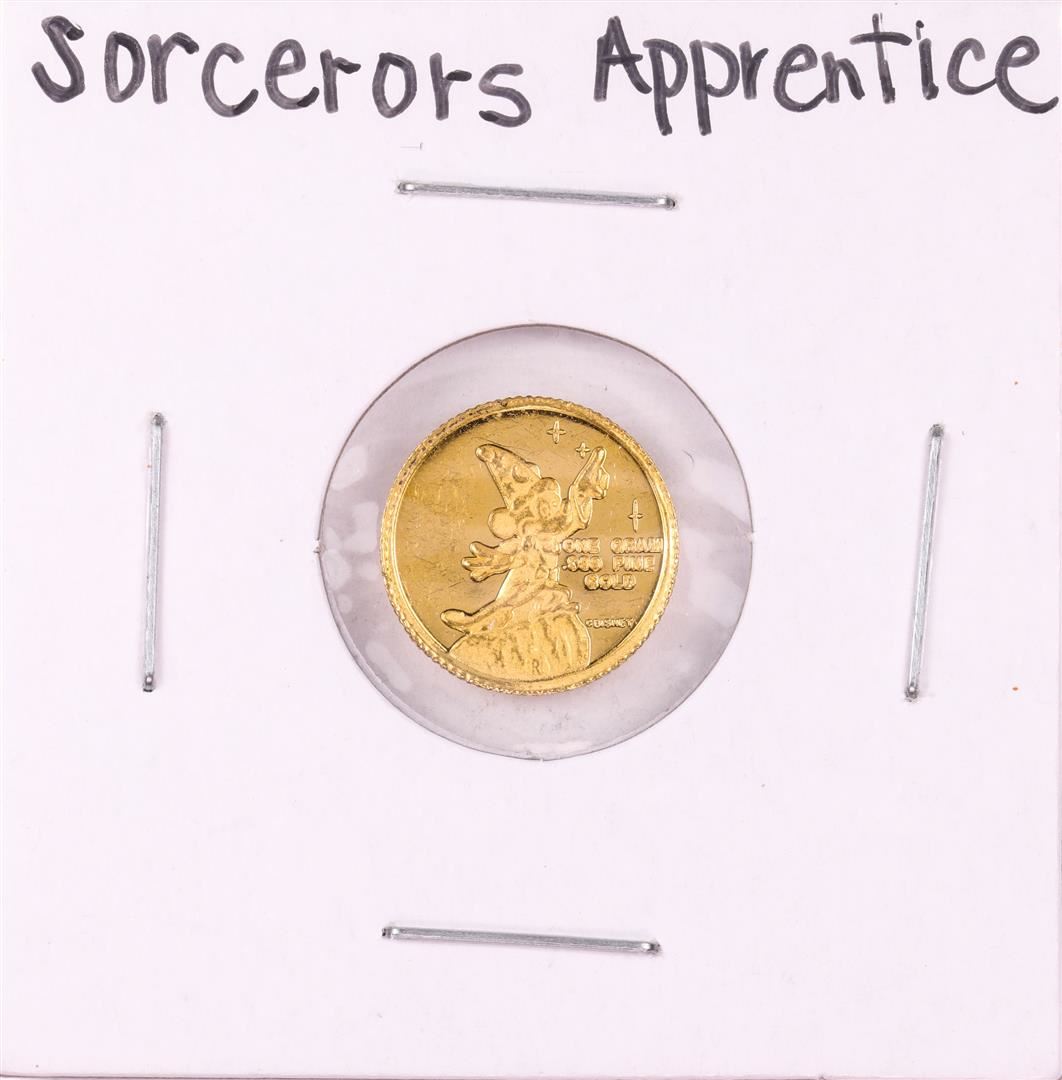 One Rarities Mint Disney Mickey "Sorcerer's Apprentice" 1 Gram .999 Fine Gold Round.