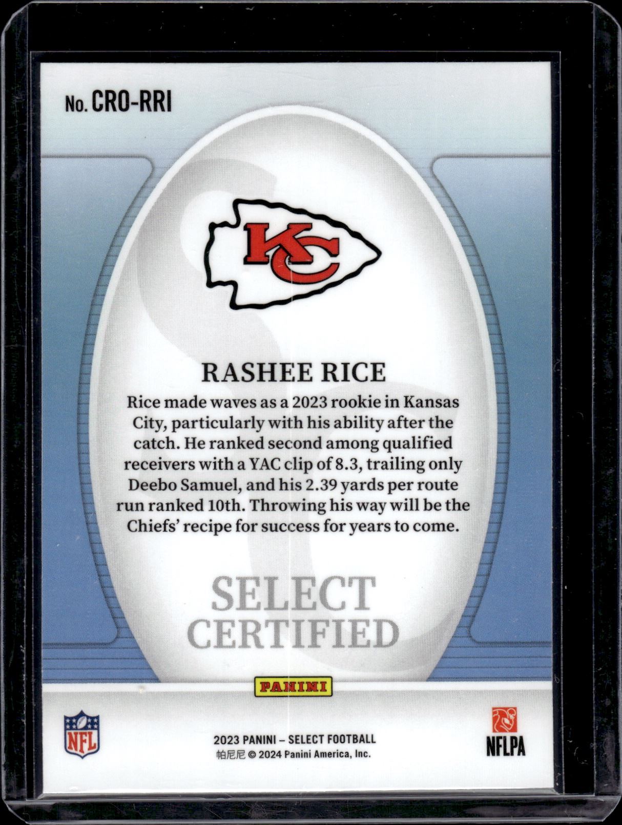 Rashee Rice Select Certified RC 2023 Select #CRO-RRI