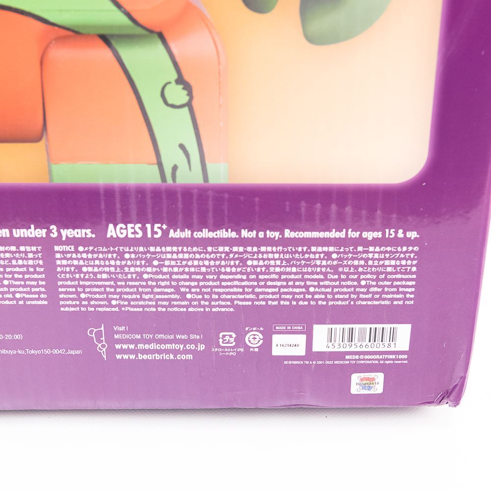 A 1000% Rat Fink Bearbrick by Medicom Toys NEW IN BOX. Box in excellent condition. Perfect addition to your collection, please use photos to judge condition and bid accordingly.