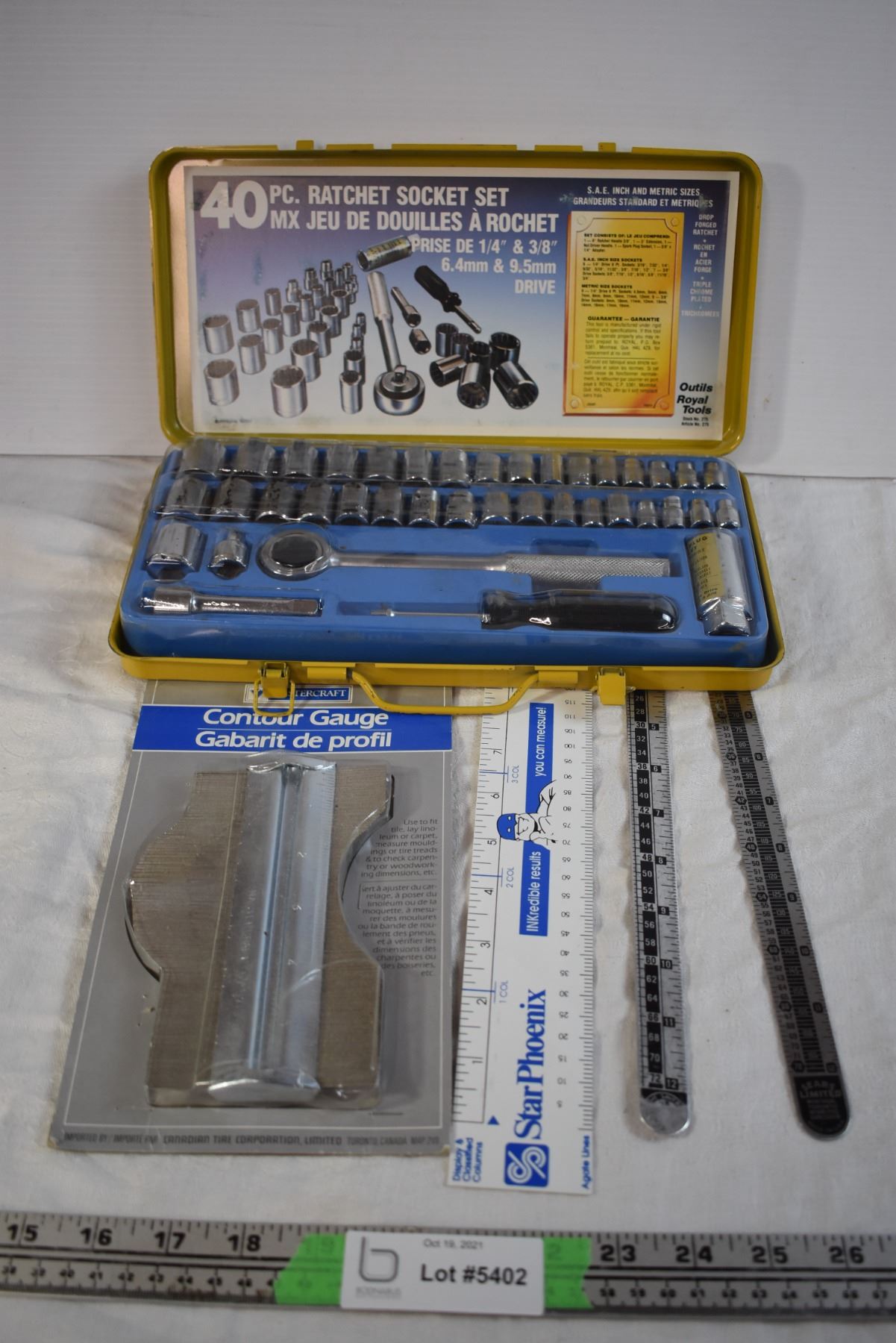 Ratchet Socket Set, Rulers, and Contour Gauge