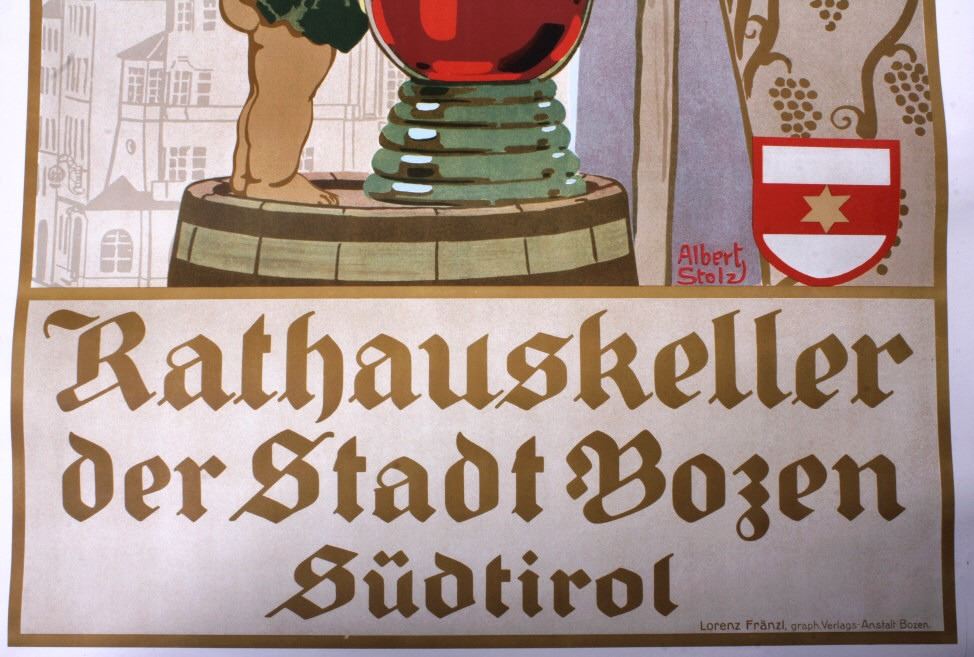For your bidding pleasure is this Rathauskeller Authentic Poster by Albert Stolz.This poster seems to be printed around the turn of the century, it shows a wine poster crafted in the now rare Arts and Crafts style; it is a look that emerged mostly out of Northern Europe and quickly flourished into the well-known French Art Nouveau style. This style usually has weighted, natural colors, chunky lines, and more masculine-based features. Rathauskeller also has a very interesting historical spin. During the time this piece was printed, the company’s location, Bozen, was a town in Southern Austria. Less than two decades later as World War I was coming to a close, Bozen (or now ‘Bolzano’)was land granted by the Triple Entente to Italy as a reward for declaring war on the Austro-Hungarian Empire and maintaining the northern border battle lines. The town remains Italian to this day. This piece is an authentic vintage poster from an original run. The poster is in good display condition. The measurements of this poster are 45 1/4" x 35"