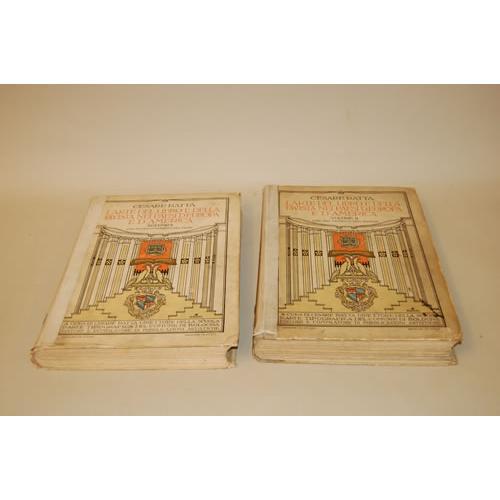 Ratta, Cesare. L'Arte Del Libro E Della Rivista Nei Paesi D'Europa E D'America - 2 Volumes. Italy: Edition Pubbliee Par Les Soins De Cesar Ratta, Directeur De L'Ecole D'Art Typographique De La Ville De Bologne, . Folio - over 12" - 15" tall. Hard Cover. Ex-Library. Good Condition. LIMITED EDITION. Volume 1 - 1927 #534/750 copies, 424pp. Volume 2 - 1928 #513/750, xxxiii, 486pp, xiii. Bound in original illustrated paper over boards, with reinforced gutters. ILLUSTRATED BOOK ART OF THE WESTERN WORLD, as shown at the International Book Fair in Florence Italy in 1925. Italian text, over 1000 illustrations, some in color or tinted. Covers show edge/corner wear/tear, BINDINGS TIGHT, hinges taped