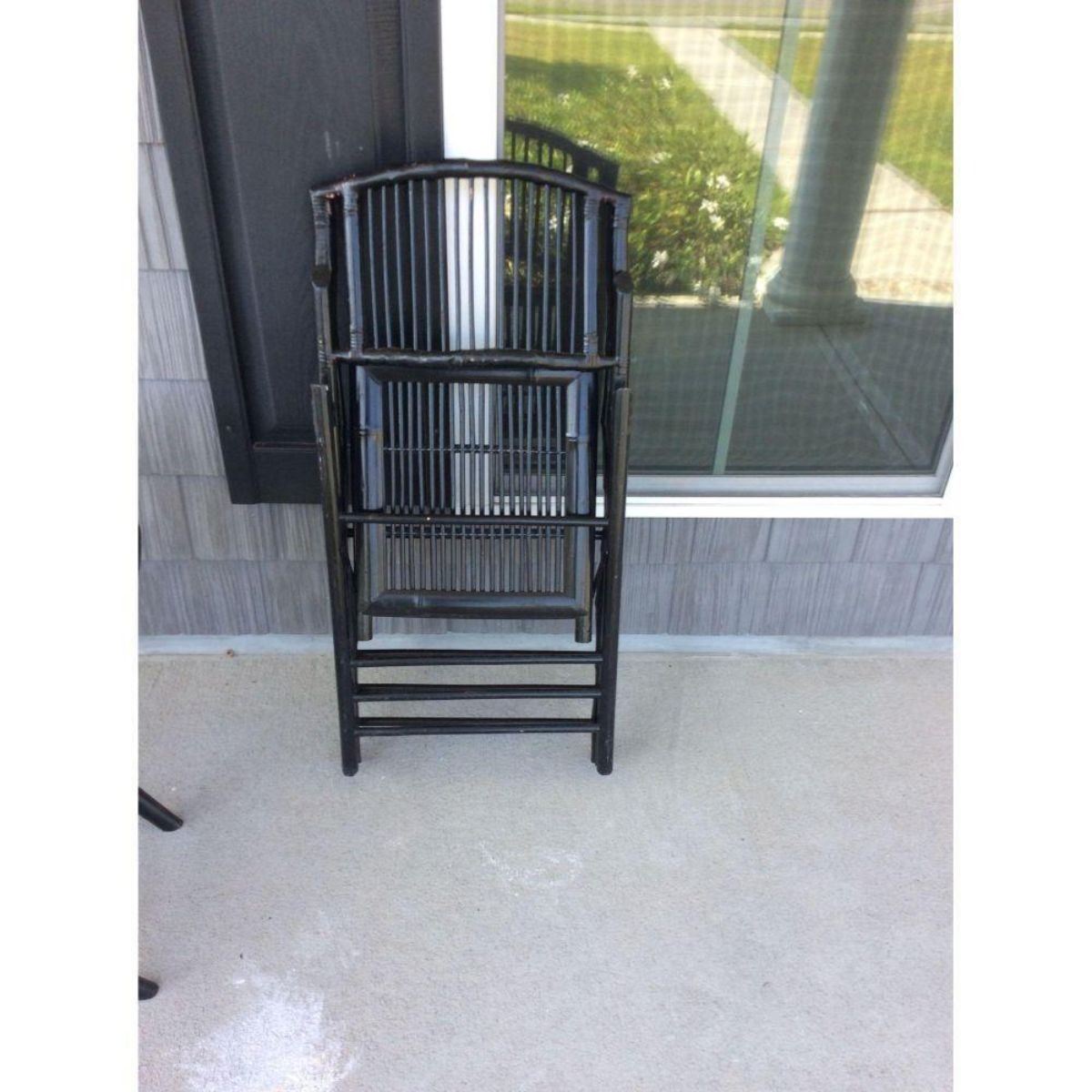 Collapsible and lightweight yet sturdy, this black rattan bistro table set is perfect for any outdoor setting. Dimensions: 2' 1 5/8"H x 2'2"D Chairs: 2'10"H x 1'6 1/2"W x 2'1"D