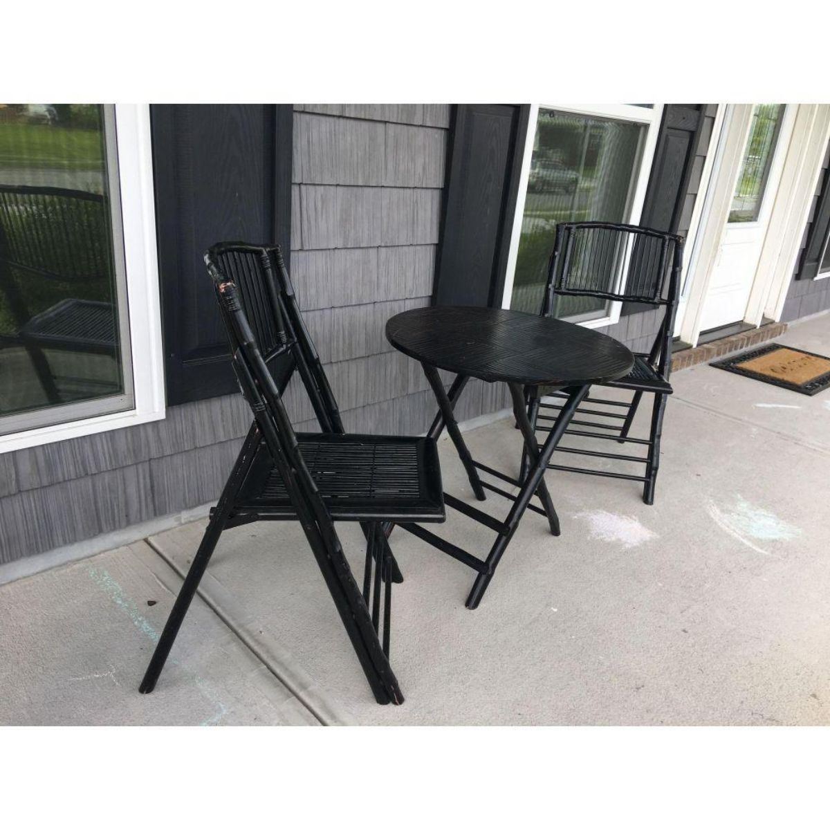 Collapsible and lightweight yet sturdy, this black rattan bistro table set is perfect for any outdoor setting. Dimensions: 2' 1 5/8"H x 2'2"D Chairs: 2'10"H x 1'6 1/2"W x 2'1"D