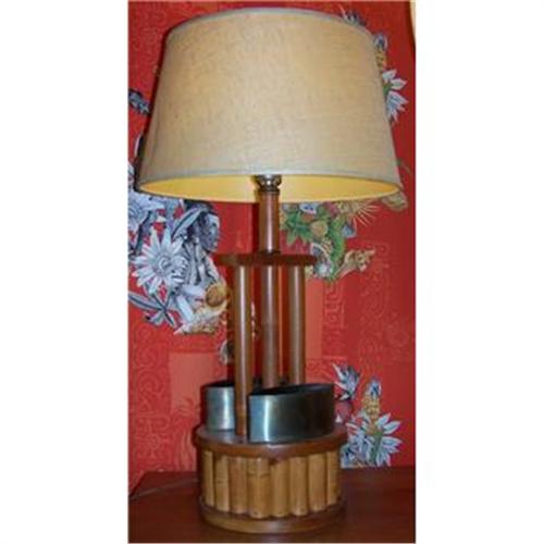 rattan lamp with planter. vintage shade (key: mid century modern retro vintage)