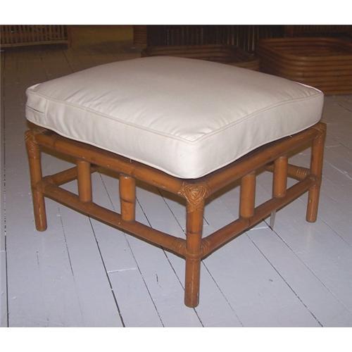 Rattan stool. new cushion (key: tropical, Hawaiian, coastal, outdoor furniture, mid century, modern, retro, vintage rattan furniture)