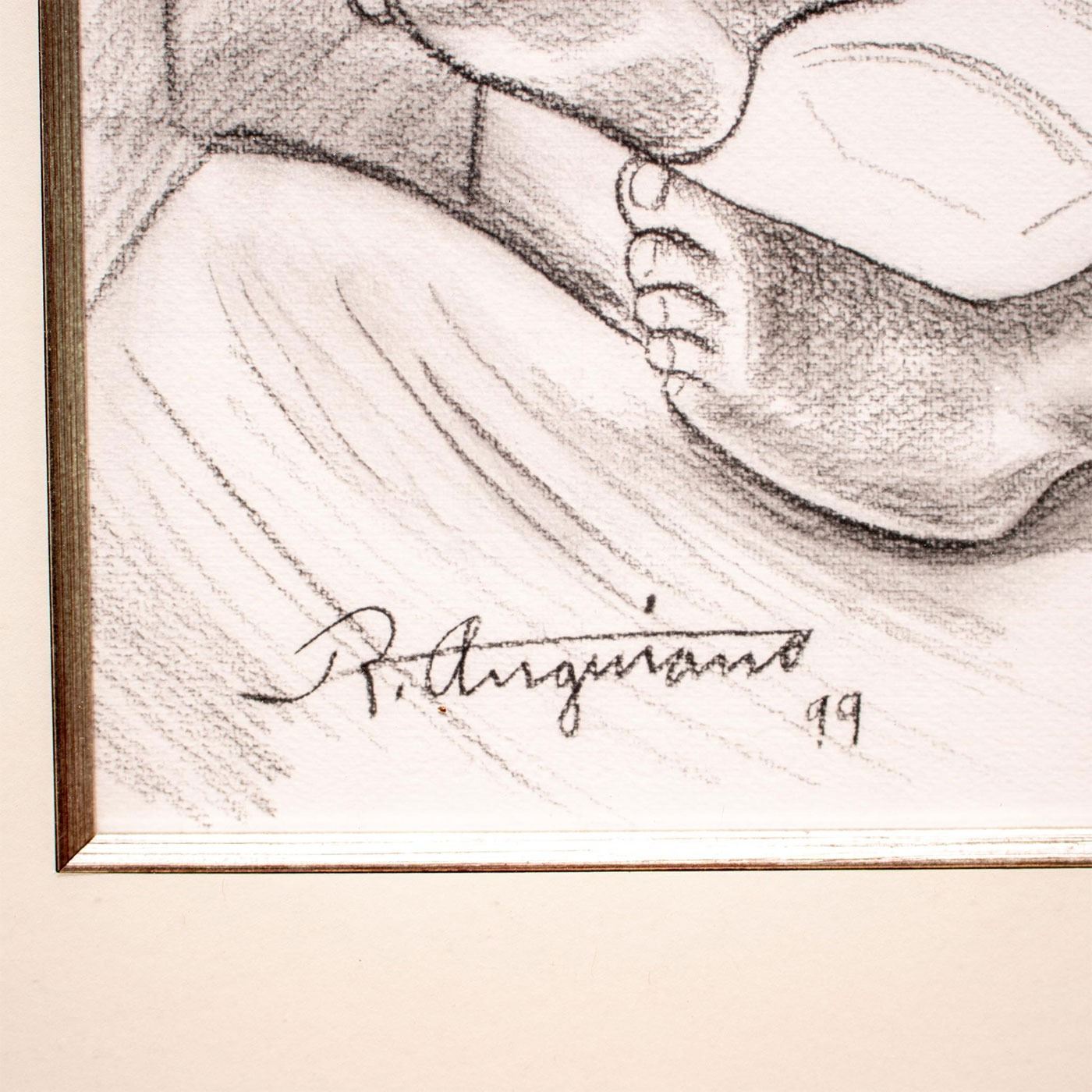 1999 Charcoal drawing, Maternity, depicts a mother nursing her child. Signed and dated lower left. Housed in frame. Sight size: 27"H x 19"W. Frame: 38.25"H x 30.5"W. Material/Technique: Charcoal Medium: Charcoal on Paper