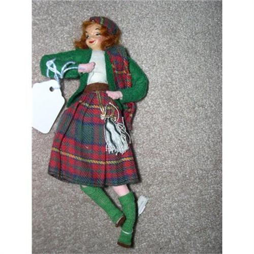 Here's a 7 1/2" tall Ravca bendable doll. She represents Scotland. She has her original store tag The Carl Co. $4.95 She is dressed in her appropriate plaid. She has a painted composition head and a felt bendable body. I only see one whole in the pink felt and it's up high on the leg covered by the skirt. She has red mohair for her wig. She's from a smoke free environment. Buyer to pay $8 for U.S. shipping, insurance, and handling. Thanks for viewing.