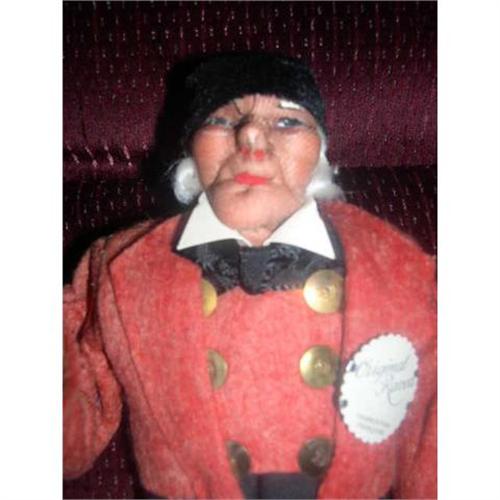 Ravca Stockinette Man w/ Cane Mint.He is great except for the tip of his nose where there is wear to the nose. She has the paper Original Ravca tag and the label sewn to the back of his pants. He is all original and has his socks and shoes. One black sock has a hole so you can see the straw but you could easily use black thread to draw it together. He comes from a smoke free environment. Buyer to pay $15 for shipping, handling, and insurance. Thanks for viewing.