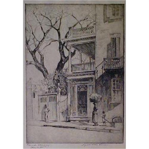 Elizabeth O'Neil Verner 1883-1979. Etching edition of 80. Size 7 inches X 4 15/16 inches. Titled Ravenel Doorway, Charleston. Signed in pencil lower right. Hinge mounted on archival board. Excellent condition.