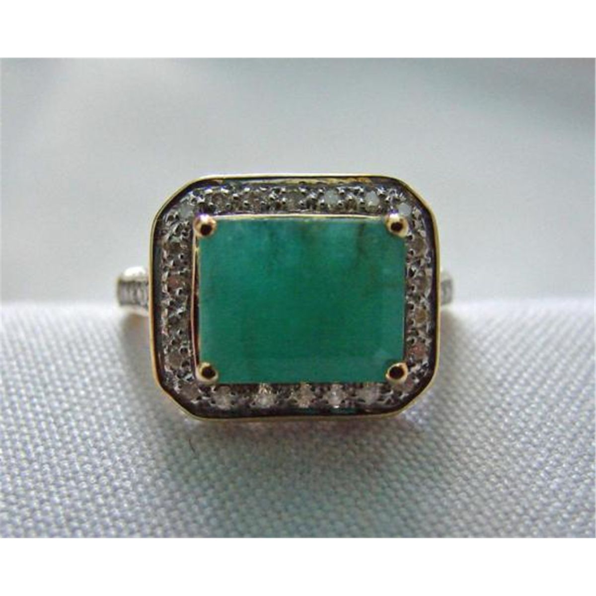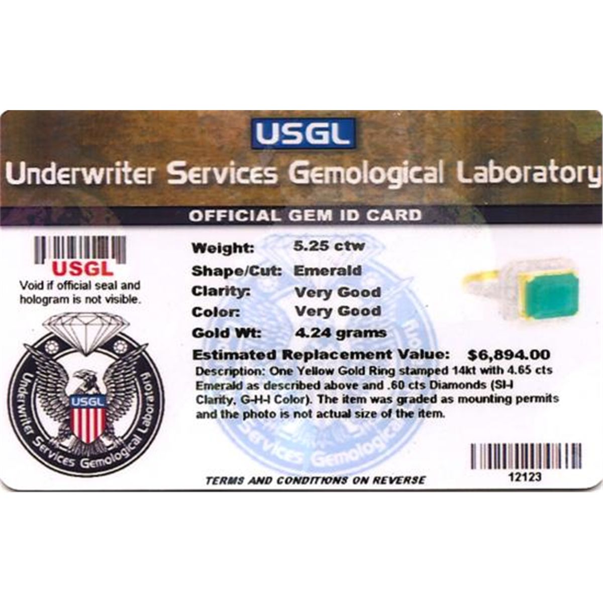 Ravishing 4.65 cts Emerald and .60cts Diamond ring in 14k yellow gold. RP8081A