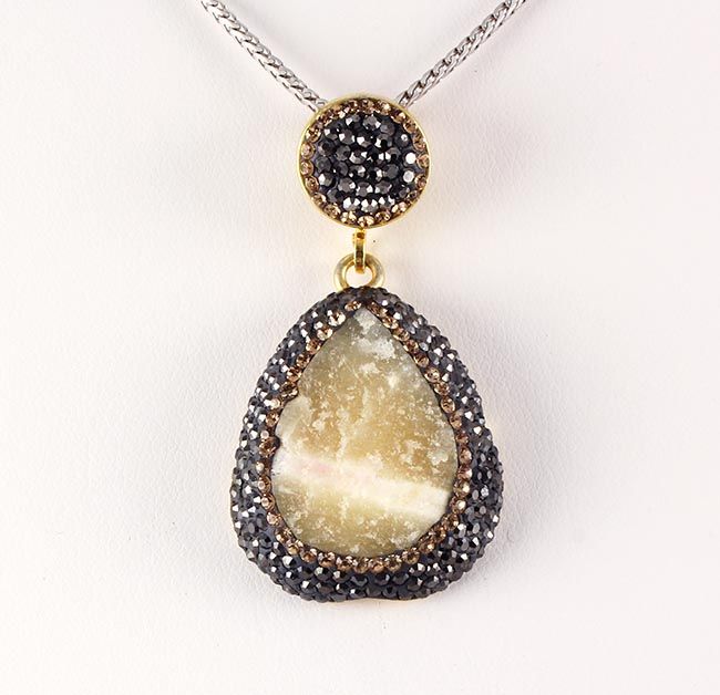 Raw Champagne Druzy Pendant Victorian Design **|**|** 12.04g Champagne Quartz Druzy Drop Natural Stone Pendant in Victorian Design w/ CZ diamonds; 925 stamp gold plated ; MSRP: $100