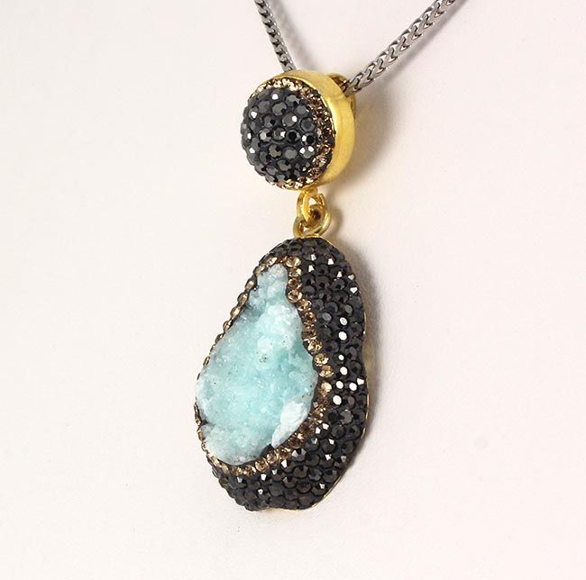 Raw Druzy Natural Stone Druse Victorian Look Pendant **|**|** 11.11g Mint Blue Druzy Drop Natural Stone Pendant in Victorian Design w/ CZ diamonds; 925 stamp gold plated ; MSRP: $300