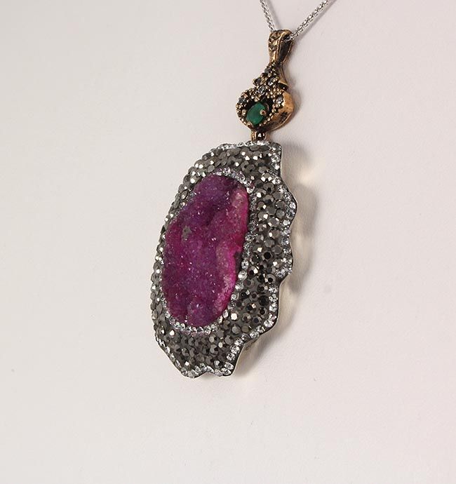 Raw Druzy Natural Stone Druse Victorian Look Pendant **|**|** 19.61g Purple Pink Druzy Natural Stone in Victorian Design Pendant w/ CZ diamonds; 925 stamp ; MSRP: $100