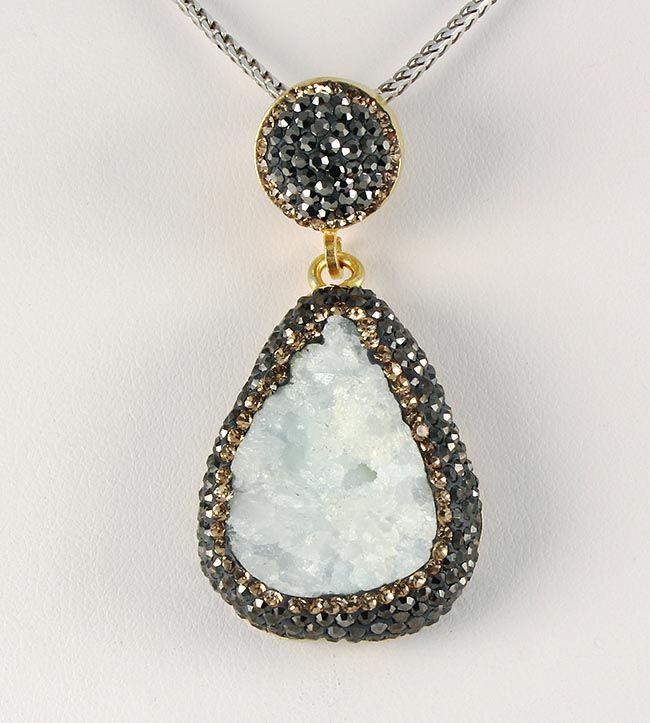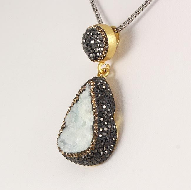Raw Druzy Natural Stone Druse Victorian Look Pendant **|**|** 12.81g Mint Blue Druzy Drop Natural Stone Pendant in Victorian Design w/ CZ diamonds; 925 stamp gold plated ; MSRP: $100